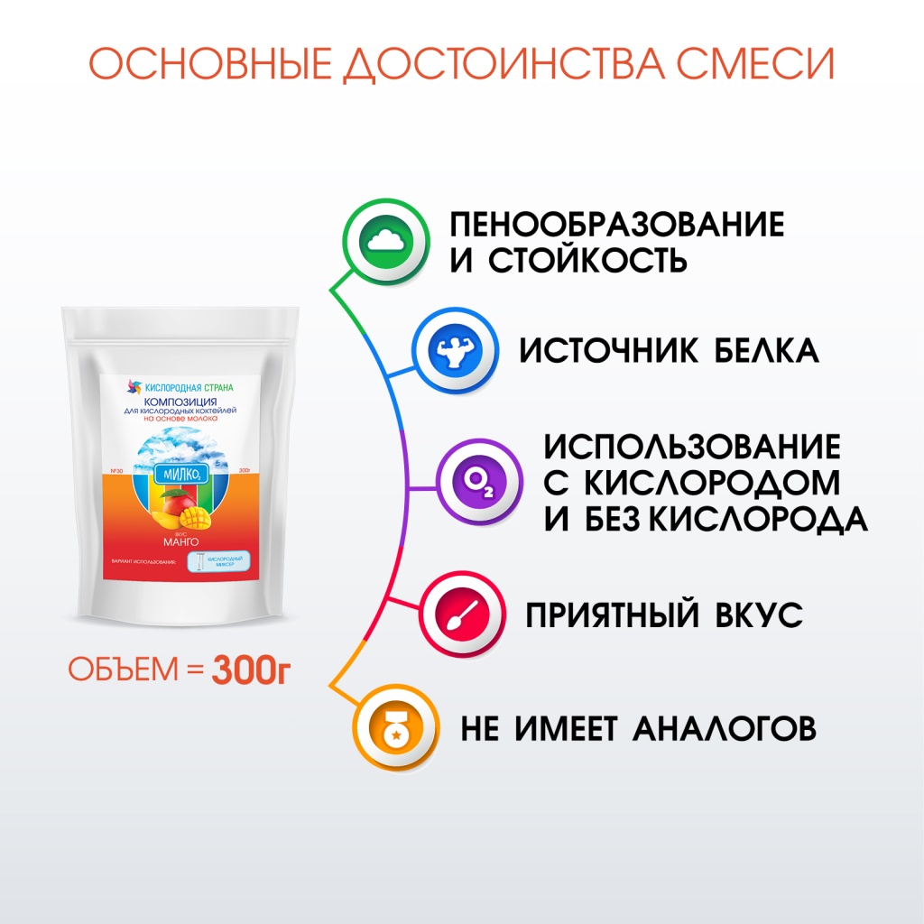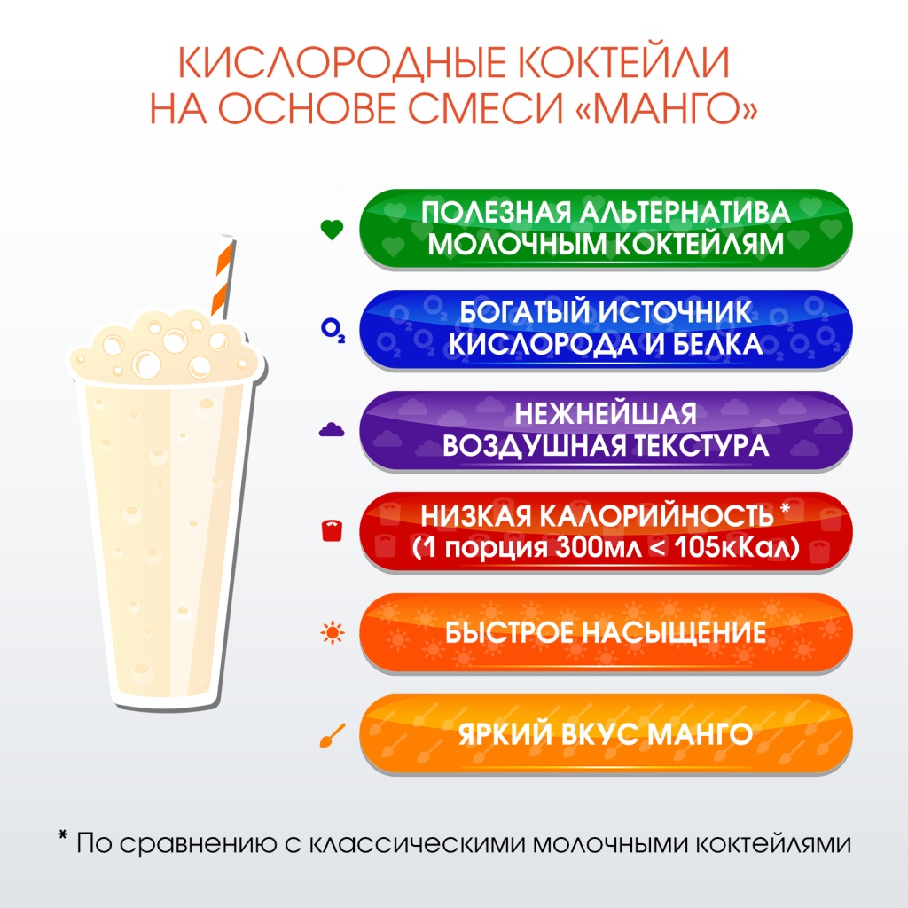 Со вкусом МАНГО. Композиция для кислородно-молочных коктейлей от производителя