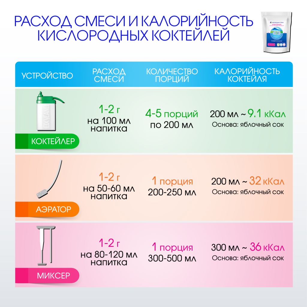 РЕКОМЕНДУЕТСЯ: для приготовления классических кислородных коктейлей в любых учреждениях и домашних условиях.