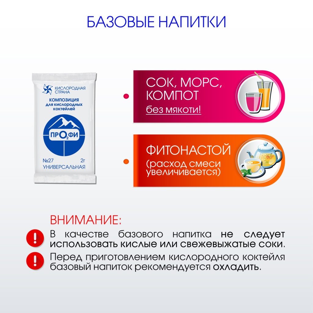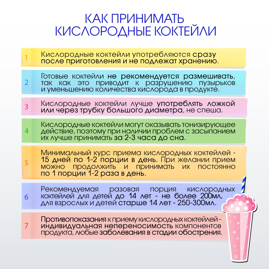 Отличные пенообразующие свойства композиции позволяют готовить кислородные коктейли не только легко и просто, но и существенно уменьшают расход смеси. Эти свойства оценены по достоинству и профессионалами кислородного бизнеса, и теми, кто готовит кислородные коктейли в домашних условиях. Оптимальное решение по разумной цене.