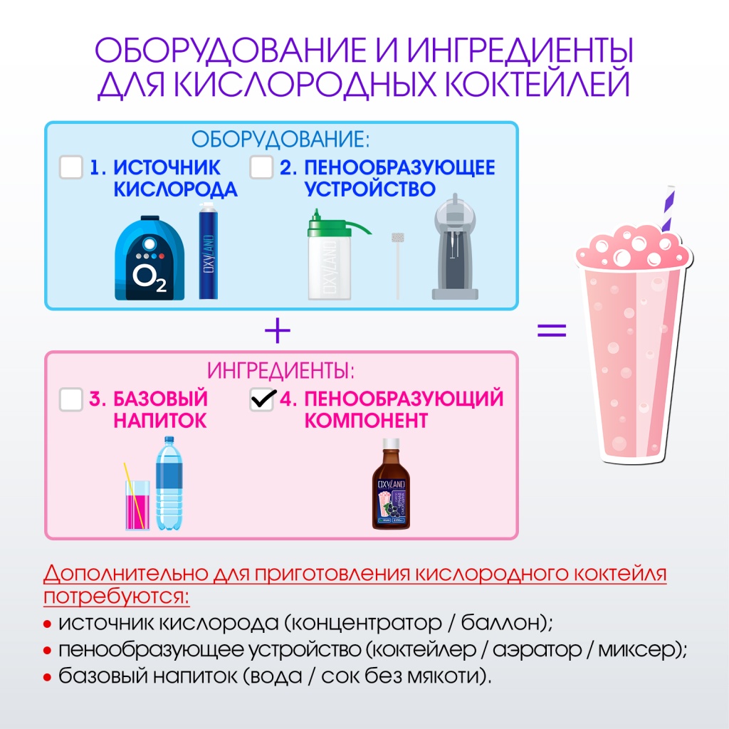 Концентрированные сиропы КИСЛОРОДНАЯ СТРАНА разработаны специально для приготовления кислородных коктейлей на основе воды. Это продукты 2 в 1: вкусовая основа + пенообразователь.