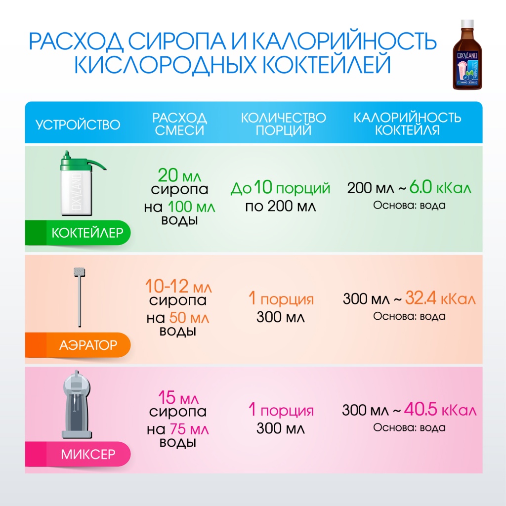 Концентрированные сиропы КИСЛОРОДНАЯ СТРАНА разработаны специально для приготовления кислородных коктейлей на основе воды. Это продукты 2 в 1: вкусовая основа + пенообразователь.
