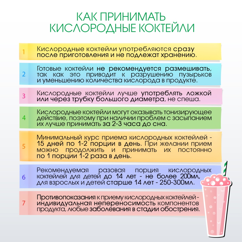 Кислородные коктейли, приготовленные на основе сиропов КИСЛОРОДНАЯ СТРАНА, не содержат яичный белок и солодку, поэтому не имеют белковой «ватности» или специфического привкуса корня солодки. Это не плотные муссы, а легкие освежающие напитки с приятным фруктово-ягодным вкусом.