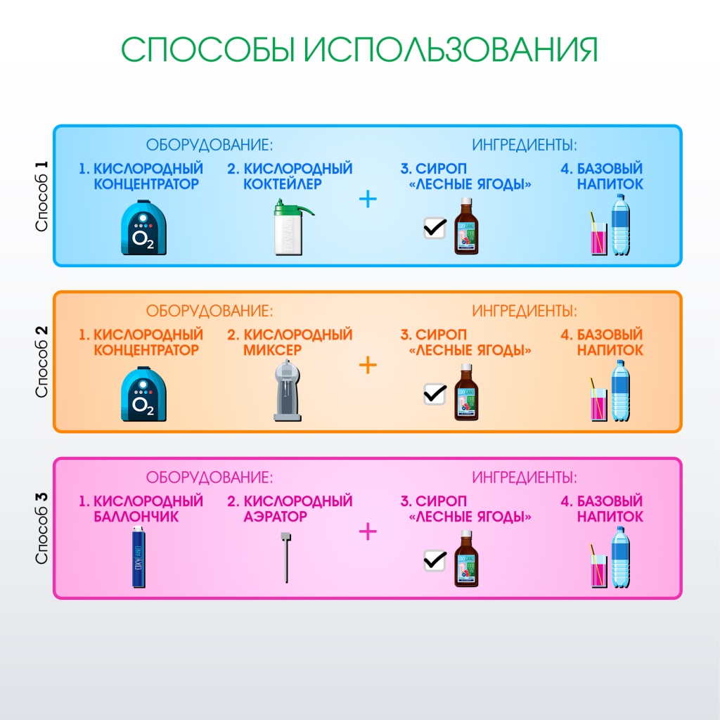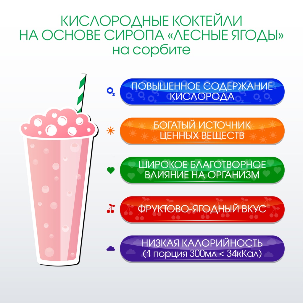 Концентрированные сиропы КИСЛОРОДНАЯ СТРАНА разработаны специально для приготовления кислородных коктейлей на основе воды. Это продукты 2 в 1: вкусовая основа + пенообразователь.