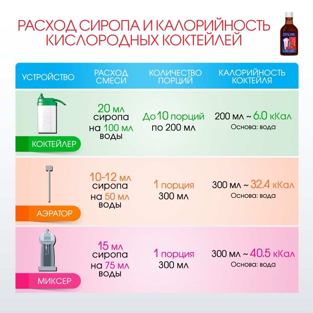 Концентрированные сиропы КИСЛОРОДНАЯ СТРАНА разработаны специально для приготовления кислородных коктейлей на основе воды. Это продукты 2 в 1: вкусовая основа + пенообразователь.